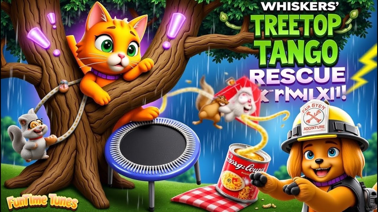 Join Whiskers, the sassy orange kitty stuck in a tree, and Captain Blaze, the goofy firefighter pup, in this high-energy musical adventure! Packed with giggles, catchy rhymes, and a heartwarming lesson about teamwork, this song teaches kids it’s okay to ask for help—even for brave little heroes! 🌟 Watch as the whole town rallies with wild rescue ideas (a trampoline? A kite? Soup?!), leading to a stormy climax and a purr-fect happy ending. Perfect for dance parties, car rides, or sparking conversations about courage and friendship!